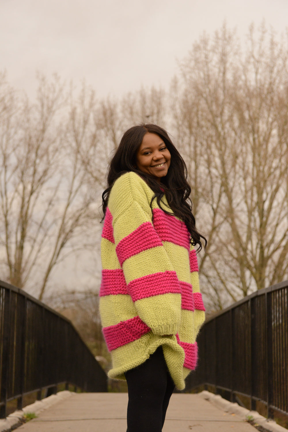 Our pieces are crafted as a one-size-fits most, thoughtfully designed to flatter sizes 6-18. The unique stitching pattern and oversized silhouette ensure a comfortable and stylish fit for a range of body types. Embrace the versatility of our knitwear, where one size fits beautifully on a spectrum of sizes.