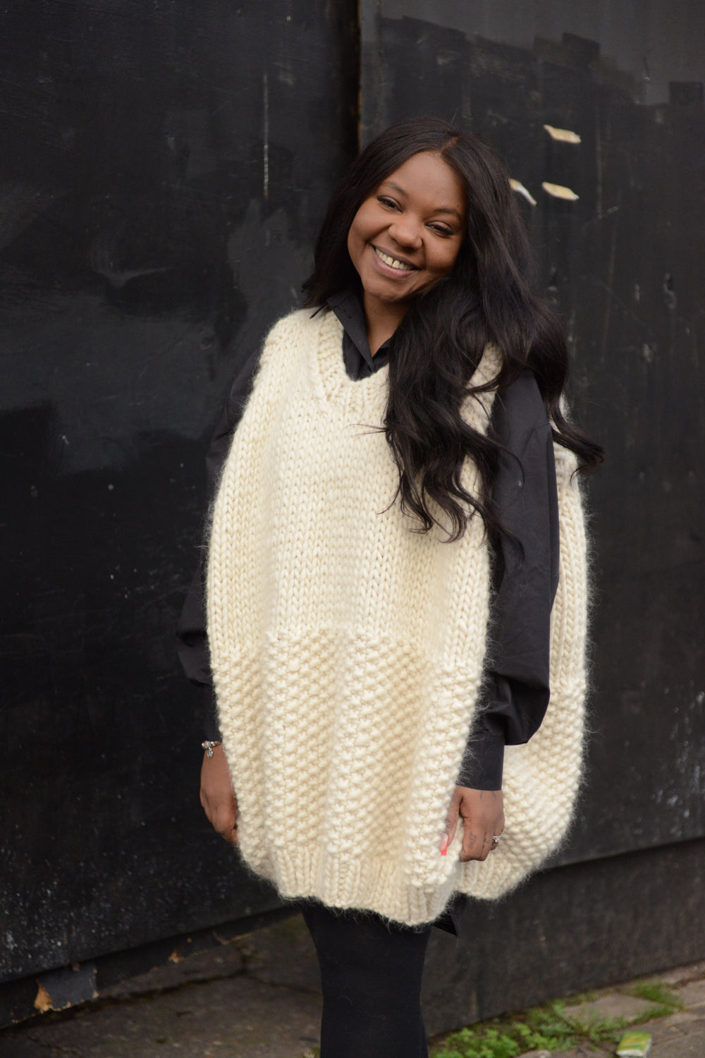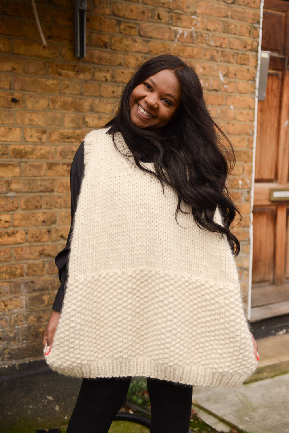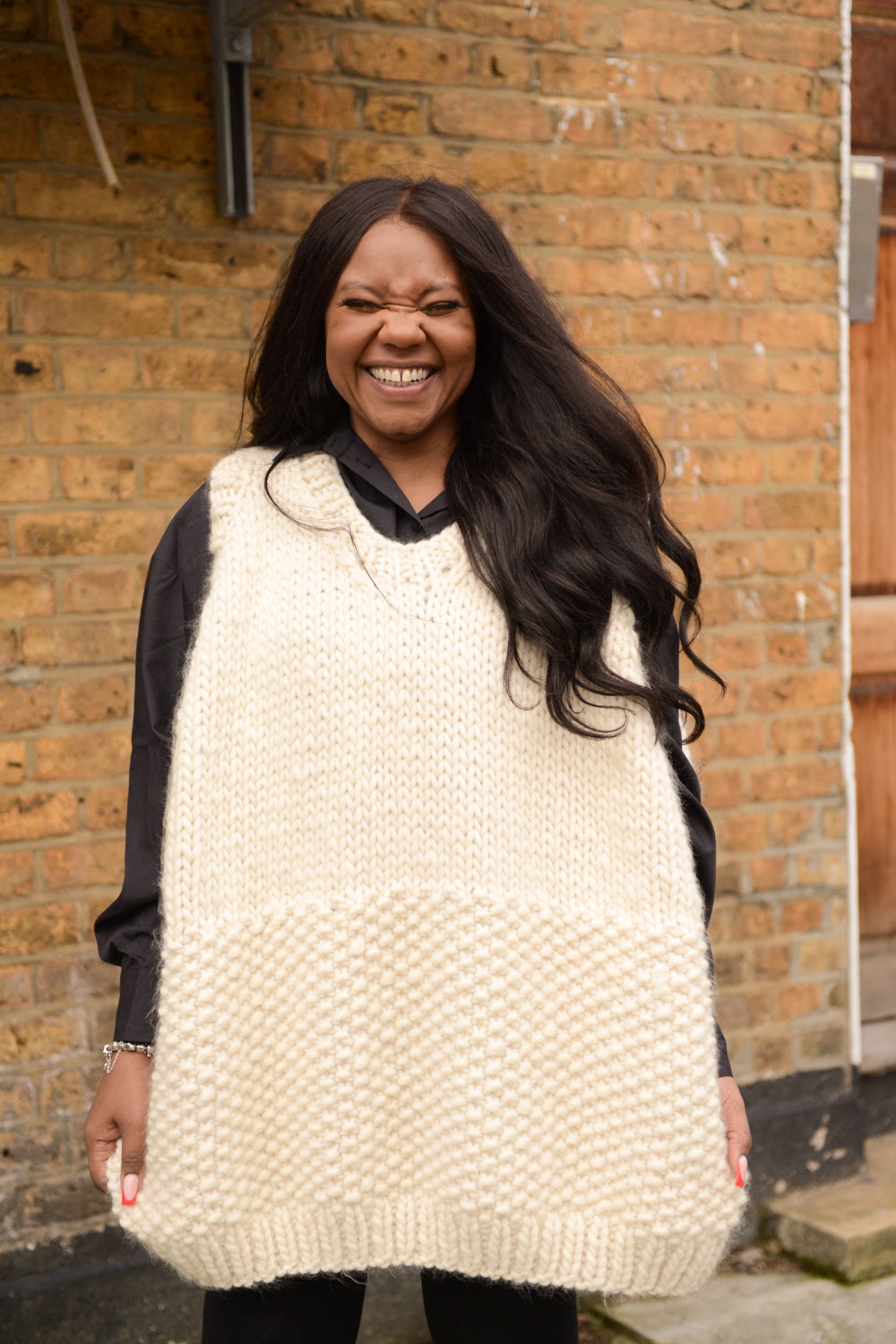 Our pieces are crafted as a one-size-fits most, thoughtfully designed to flatter sizes 6-18. The unique stitching pattern and oversized silhouette ensure a comfortable and stylish fit for a range of body types. Embrace the versatility of our knitwear, where one size fits beautifully on a spectrum of sizes.